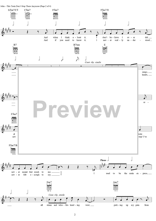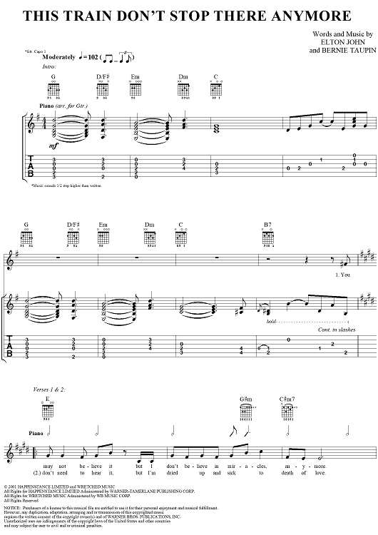 "This Train Don't Stop There Anymore" Sheet Music by Elton John