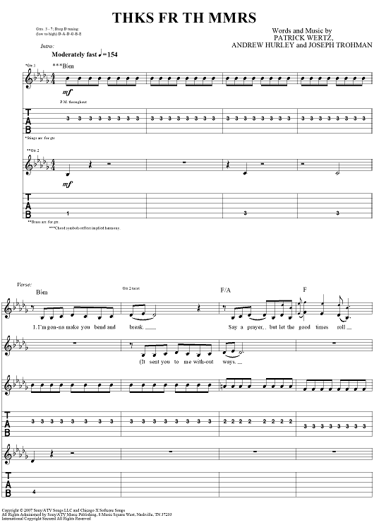 "Thnks Fr Th Mmrs" Sheet Music by Fall Out Boy