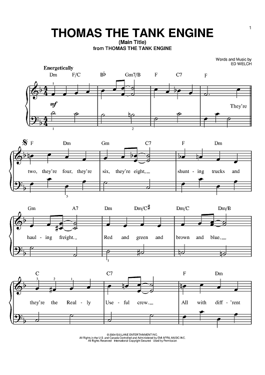 "Thomas The Tank Engine (Main Title)" Sheet Music by Ed Welch