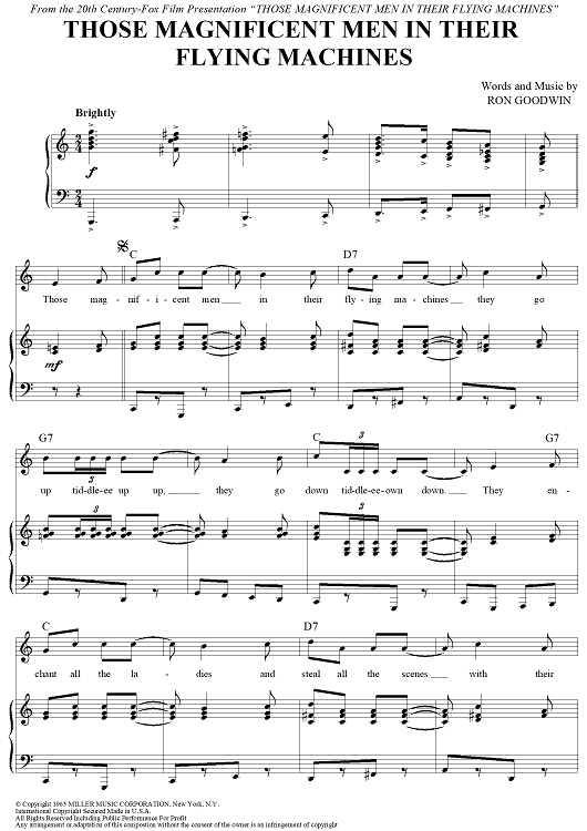 "Those Magnificent Men In Their Flying Machines" Sheet Music by Ron Goodwin