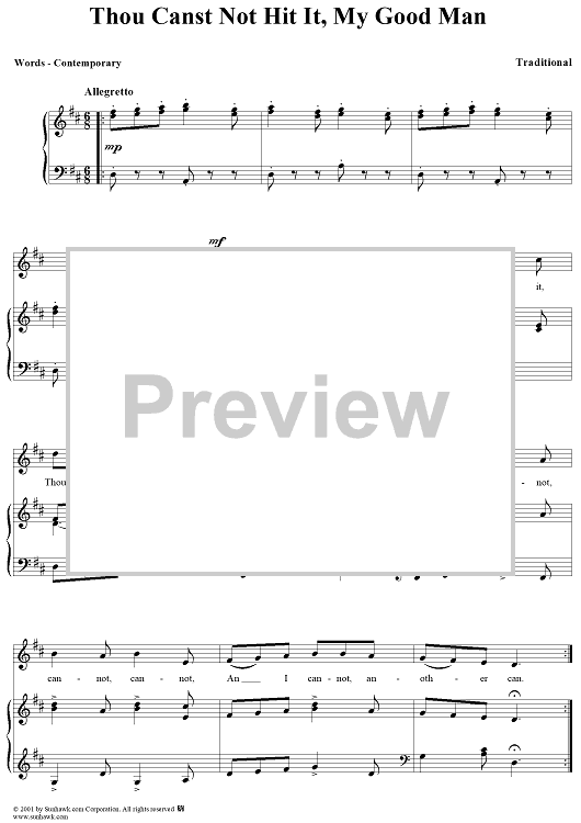 "Thou canst not hit it, my good man (modern words)" Sheet Music by Traditional