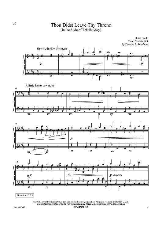 Digital Sheet Music for Thou Didst Leave Thy Throne (In the Style of Tchaikovsky) by Timothy Richard Matthews, Lani Smith scored for Piano Solo; id:433590