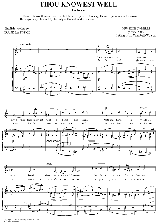 "Thou Knowest Well (Tu lo sai)" Sheet Music by Giuseppe Torelli