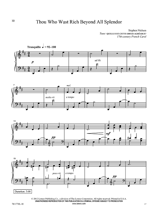 Digital Sheet Music for Thou Who Wast Rich Beyond All Splendor by Stephen Nielson, 17th-century French Carol scored for Piano Solo; id:437694