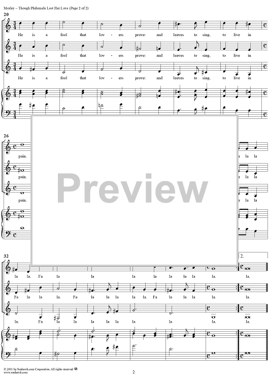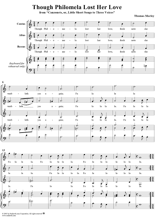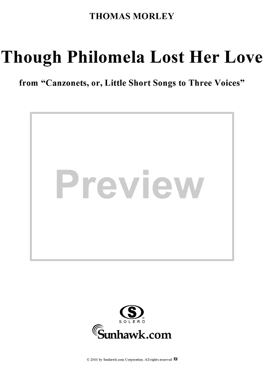 "Though Philomela Lost Her Love" Sheet Music by Thomas Morley