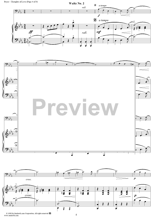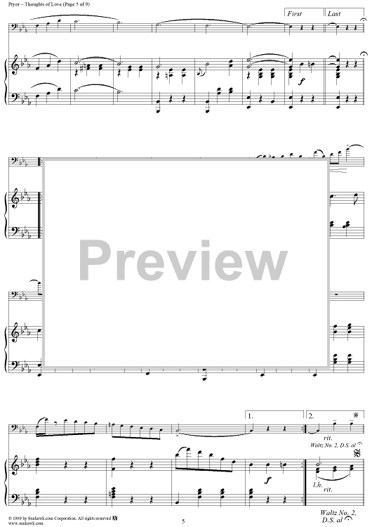 Digital Sheet Music for Thoughts of Love - Piano Score by Arthur Pryor scored for Trombone/Piano; id:118582