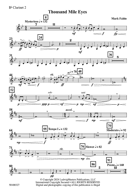 "Thousand Mile Eyes - Bb Clarinet 2" Sheet Music by Mark Fabio