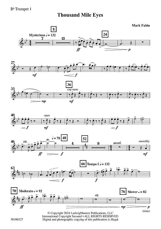 Digital Sheet Music for Thousand Mile Eyes - Bb Trumpet 1 by Mark Fabio scored for Concert Band; id:503790