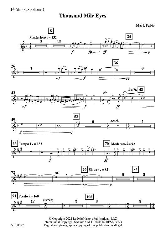 "Thousand Mile Eyes - Eb Alto Sax 1" Sheet Music by Mark Fabio