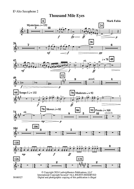 "Thousand Mile Eyes - Eb Alto Sax 2" Sheet Music by Mark Fabio