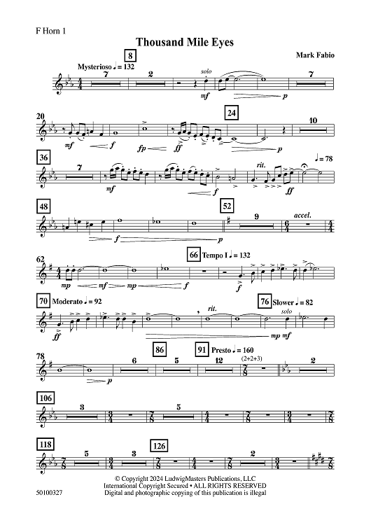 Digital Sheet Music for Thousand Mile Eyes - F Horn 1 by Mark Fabio scored for Concert Band; id:503793