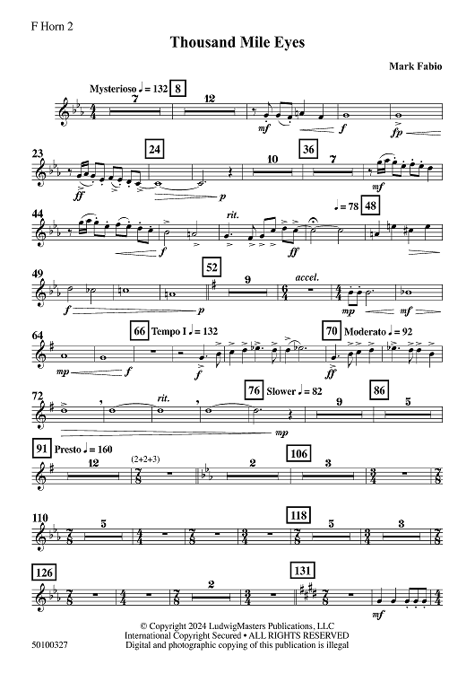 Digital Sheet Music for Thousand Mile Eyes - F Horn 2 by Mark Fabio scored for Concert Band; id:503794