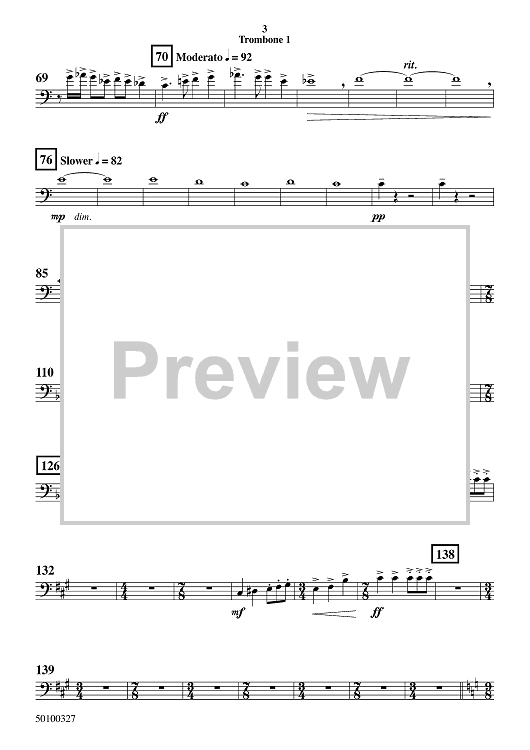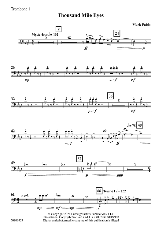 Digital Sheet Music for Thousand Mile Eyes - Trombone 1 by Mark Fabio scored for Concert Band; id:503795