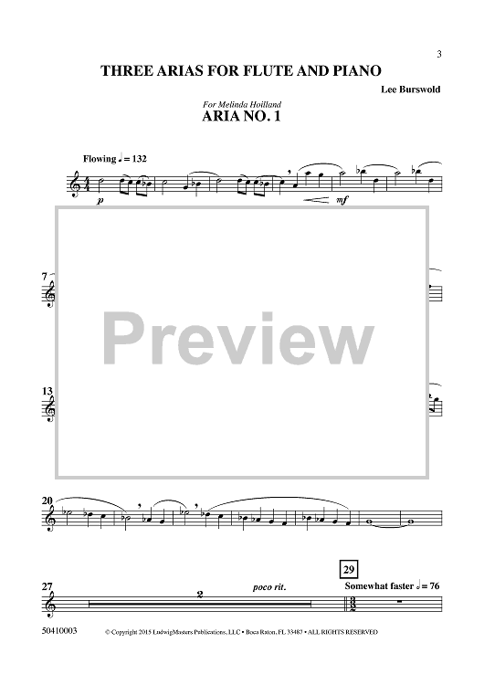"Three Arias for Flute and Piano" Sheet Music by Lee Burswold