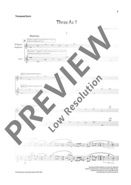 Commissioned by the World Saxophone Congress in 2015 and first performed by Jean-Charles Richard and Eric Ferrand-N'Kaoua. This three-part composition incorporates intimate sounds from the piano and saxophone and collective improvisation which culminates in the energetic third movement. Exclusively available as a digital download from notafina [1] Links: ------ [1] https://en.notafina.de/shop/three-as-1.html