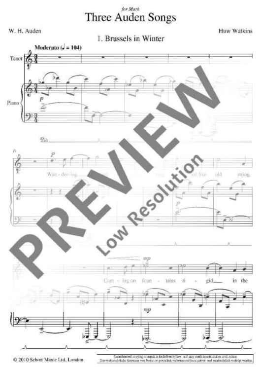 "Three Auden Songs" Sheet Music by Huw Watkins