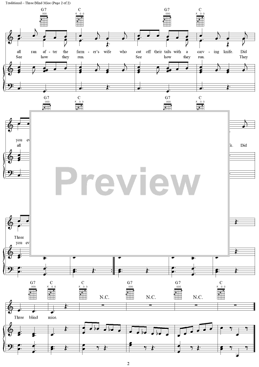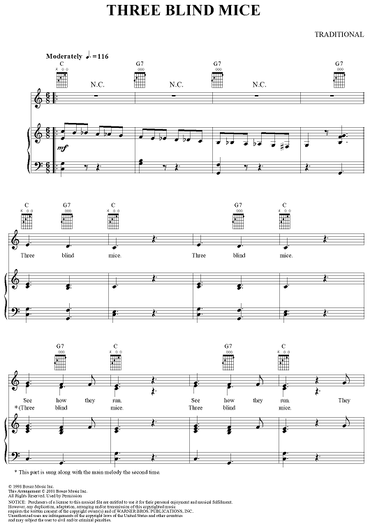 Digital Sheet Music for Three Blind Mice by Traditional scored for Piano/Vocal/Chords; id:289205