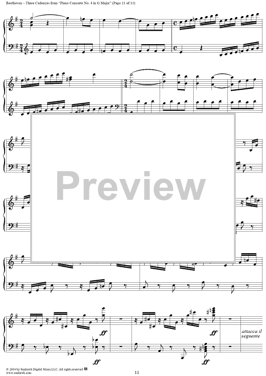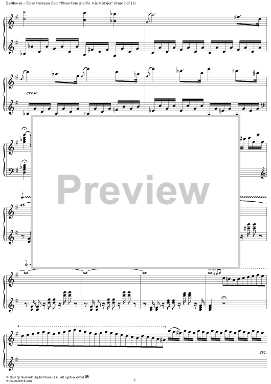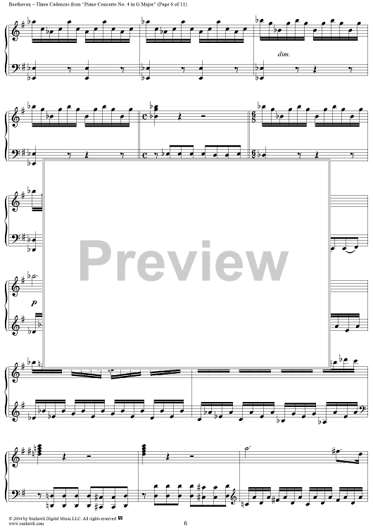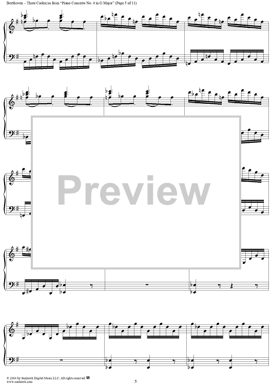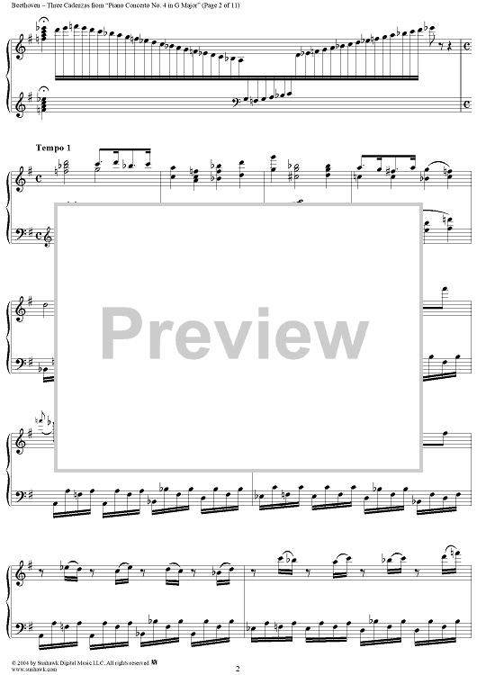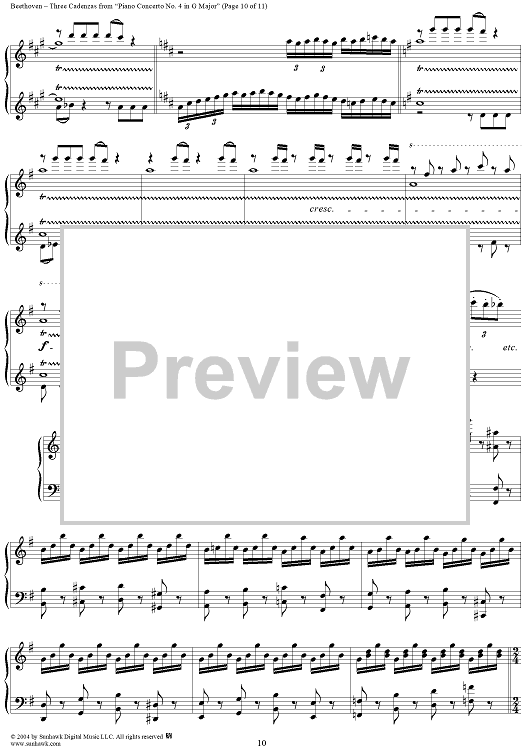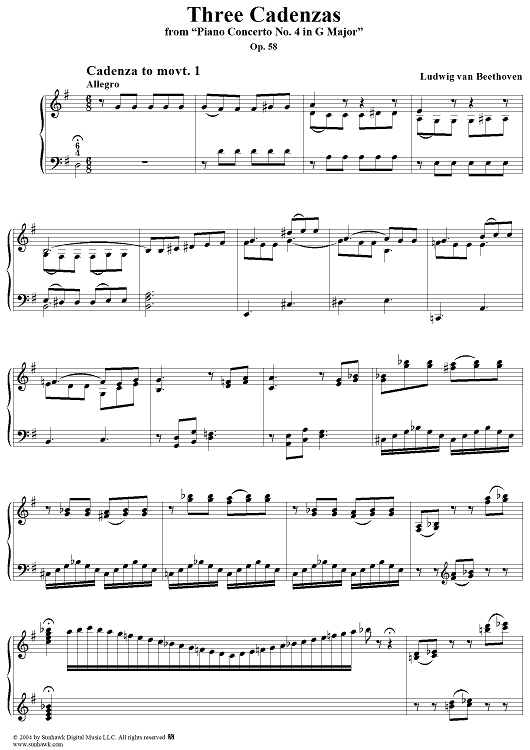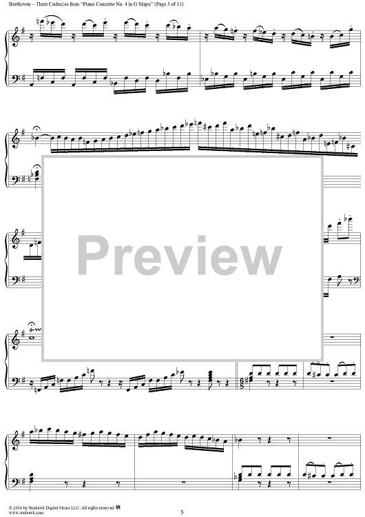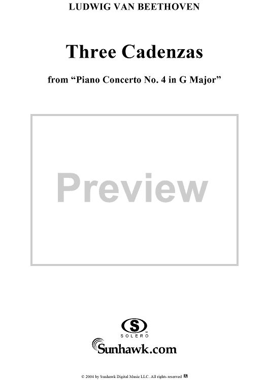 Digital Sheet Music for Three Cadenzas to Piano Concerto No. 4 in G Major, Op. 58 by Ludwig van Beethoven scored for Piano Solo; id:296338