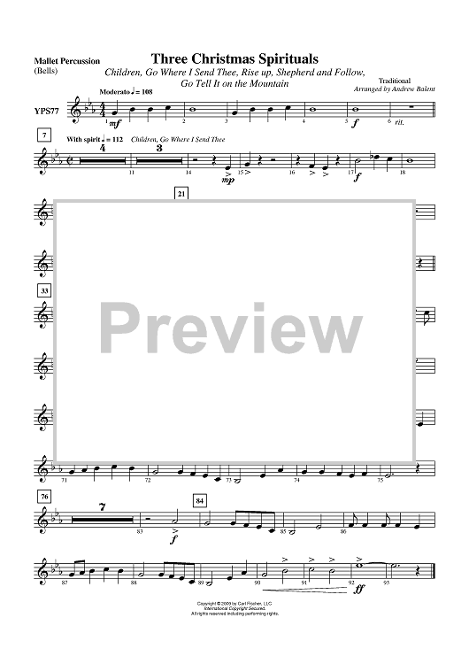 "Three Christmas Spirituals - Mallet Percussion" Sheet Music by