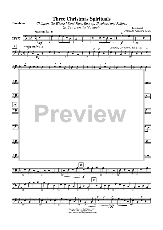 "Three Christmas Spirituals - Trombone" Sheet Music by