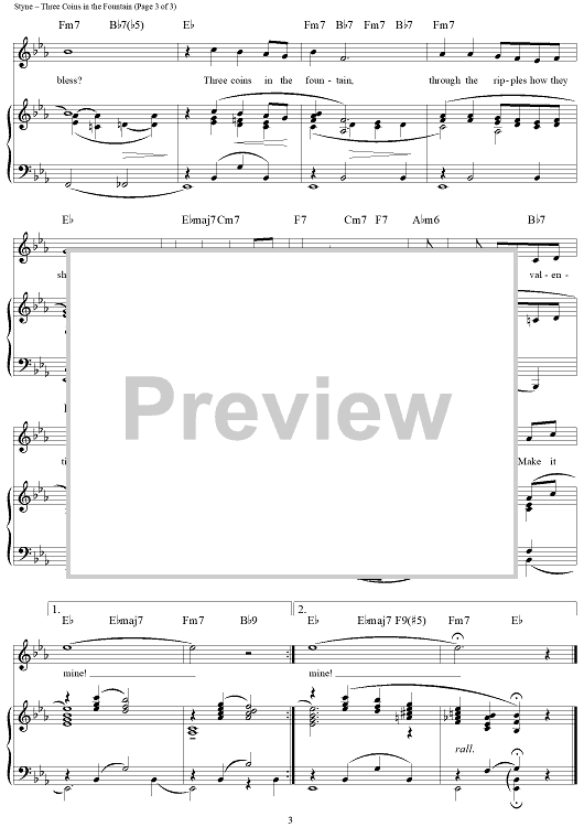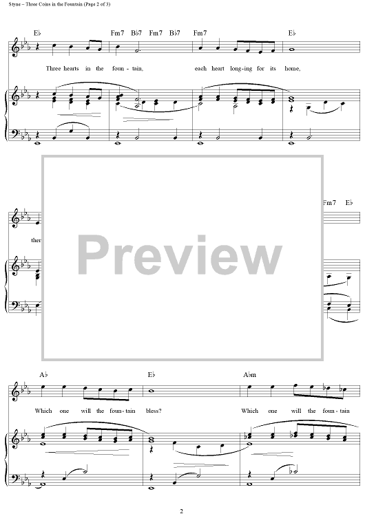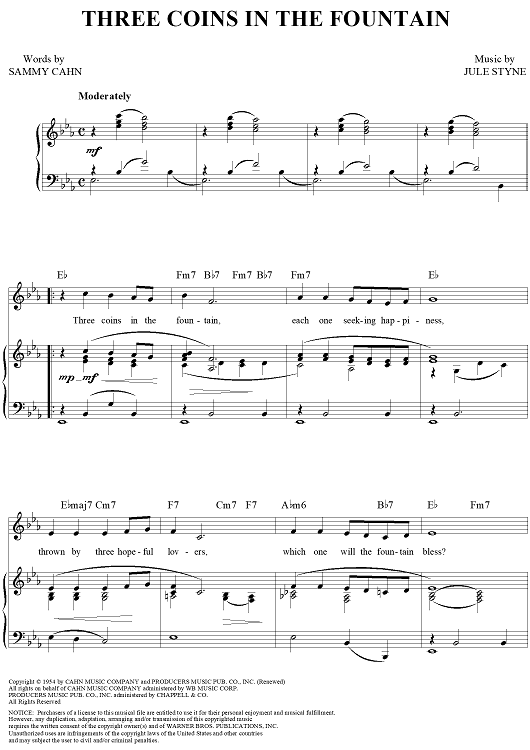 Digital Sheet Music for Three Coins in the Fountain by Frank Sinatra, Jule Styne, Sammy Cahn, Eddie Fisher scored for Piano/Vocal/Chords; id:173740