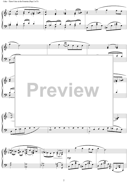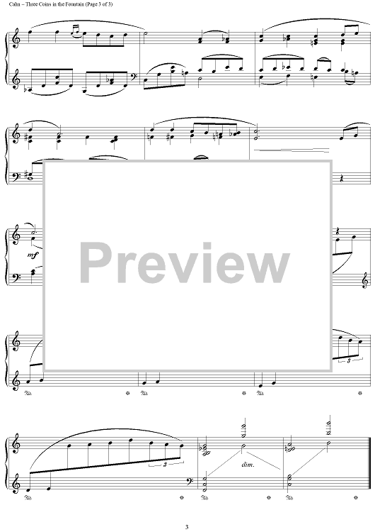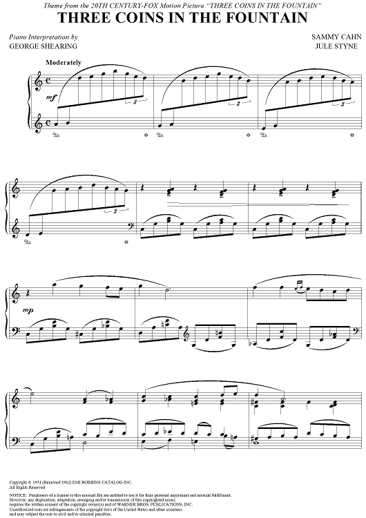 Digital Sheet Music for Three Coins in the Fountain by Jule Styne, Sammy Cahn, George Shearing scored for Piano Solo; id:257987