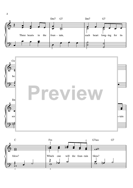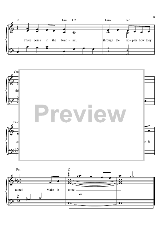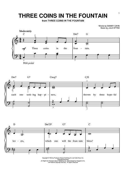 Digital Sheet Music for Three Coins In The Fountain by Frank Sinatra, Jule Styne, Sammy Cahn, The Four Aces scored for Easy Piano; id:395341