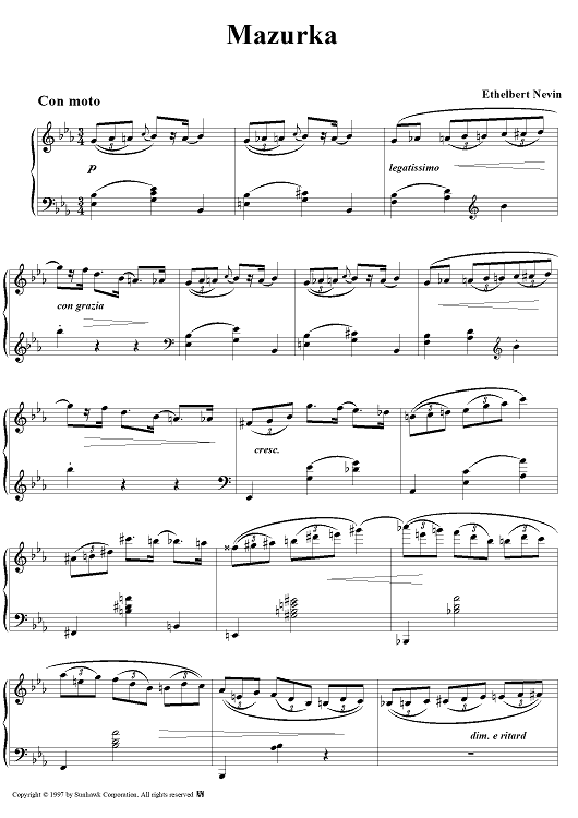 Digital Sheet Music for Three Dances, Op. 6, No. 3: Mazurka by Ethelbert Nevin scored for Piano Solo; id:94851
