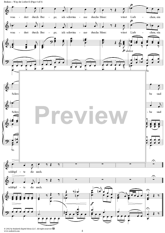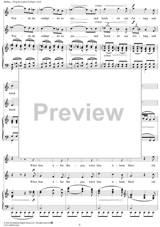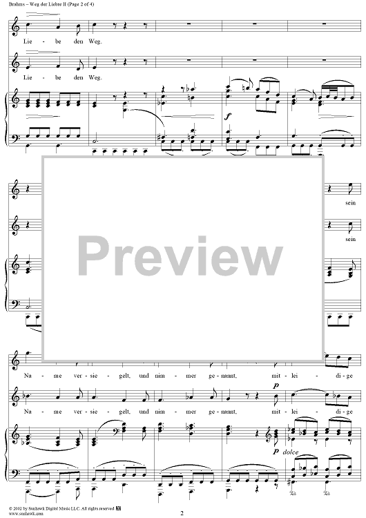 Digital Sheet Music for Three Duets, Op.20, No.2 Weg der Liebre II, " Den gordischen Knoten, den liebe sich band" by Johannes Brahms scored for Soprano/Alto/Piano; id:274824