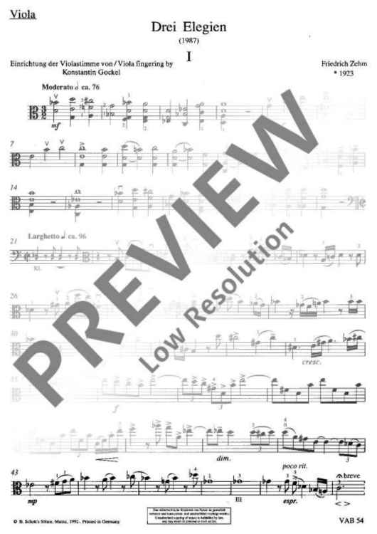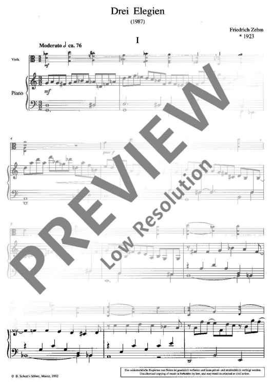 Digital Sheet Music for Three Elégies by Friedrich Zehm scored for Viola And Piano; id:483151