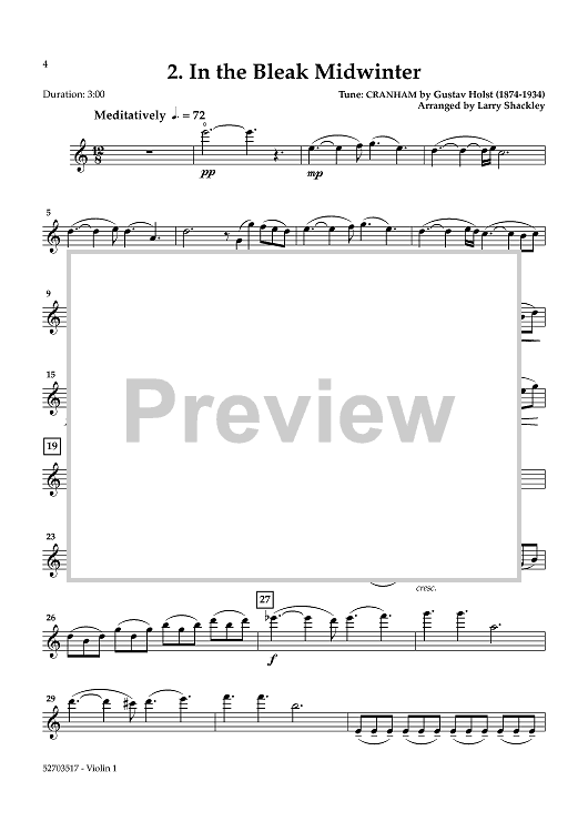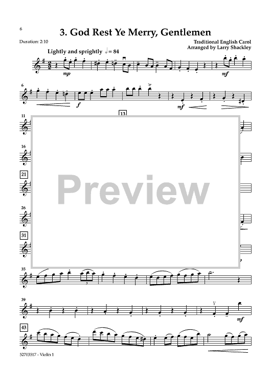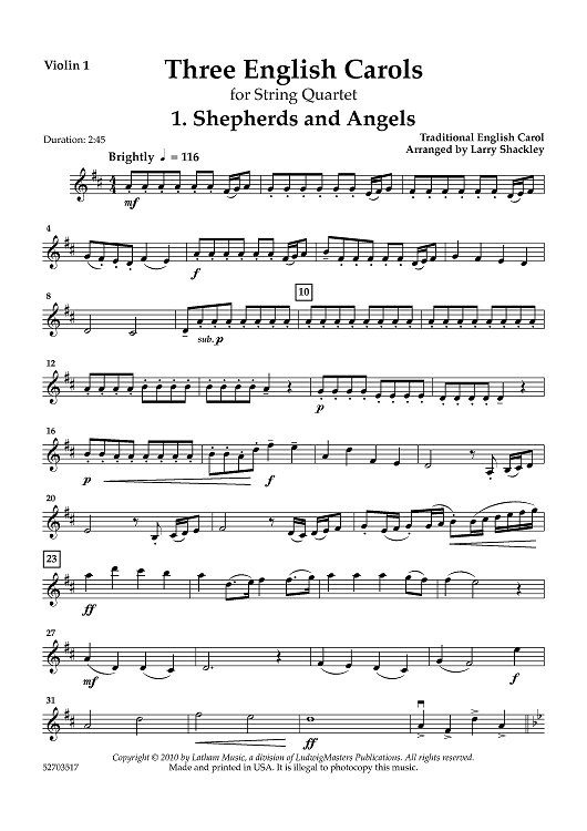 Digital Sheet Music for Three English Carols - Violin 1 by Various, Larry Shackley scored for String Quartet; id:461121