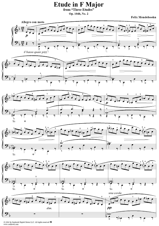 "Three Etudes, Op. 104b, No. 2: Etude in F Major" Sheet Music by Felix Mendelssohn