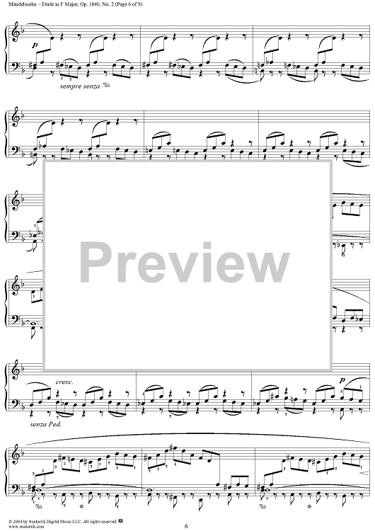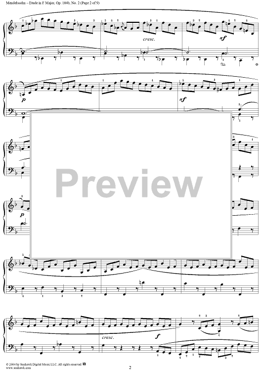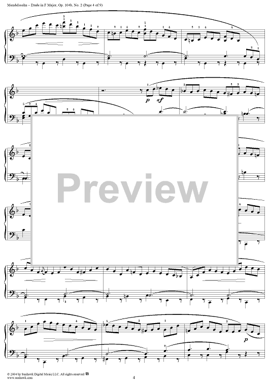 Digital Sheet Music for Three Etudes, Op. 104b, No. 2: Etude in F Major by Felix Mendelssohn scored for Piano Solo; id:296087