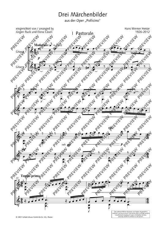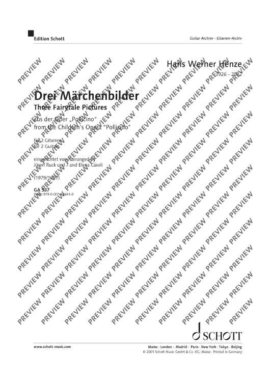 Digital Sheet Music for Three Fairytale Pictures - Performing Score by Hans Werner Henze scored for 2 Guitars; id:482717