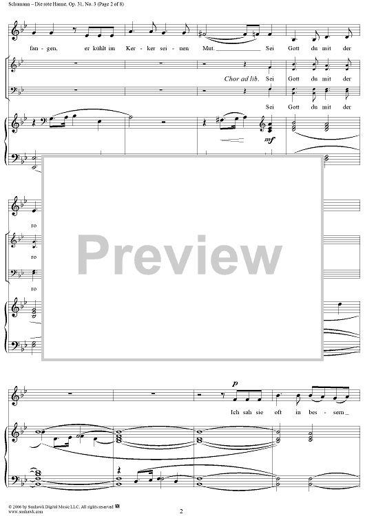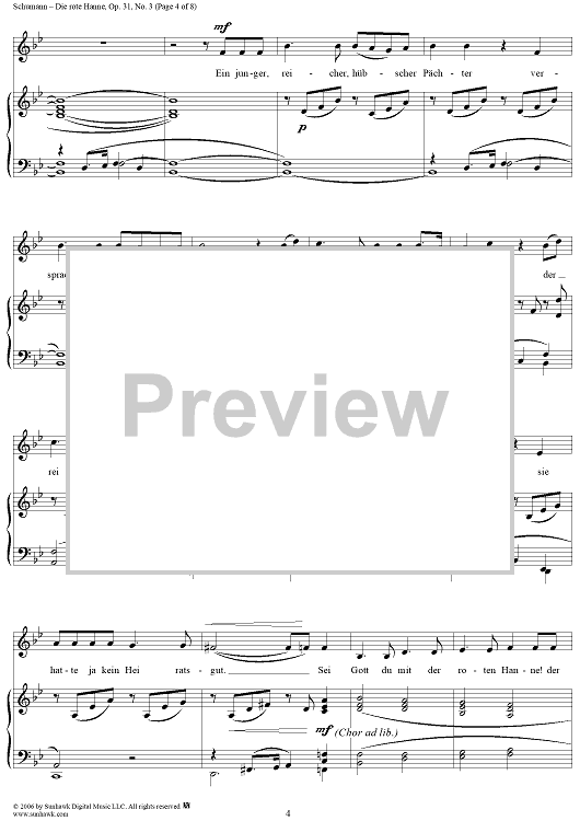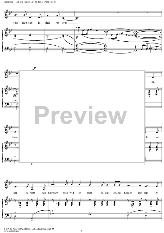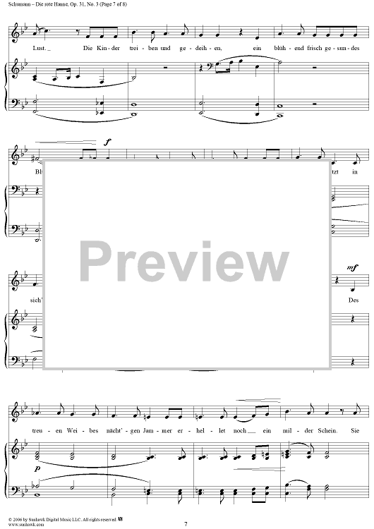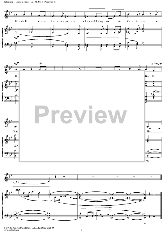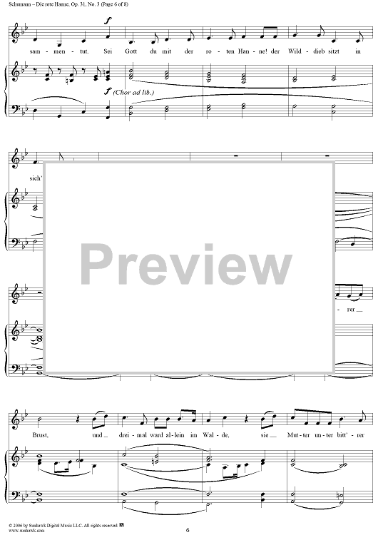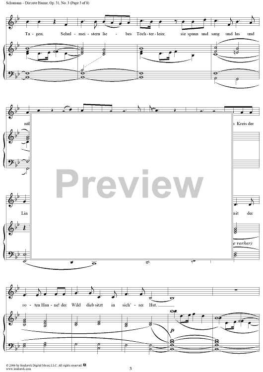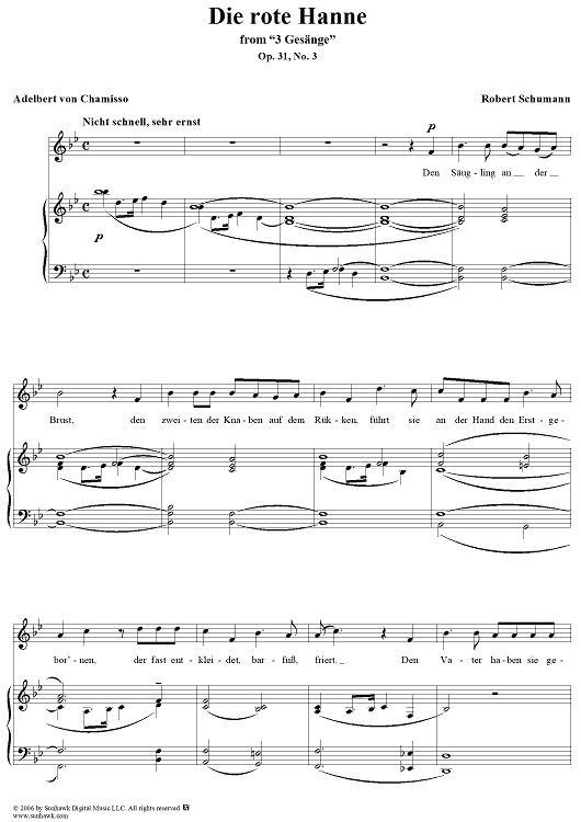 Digital Sheet Music for Three Gesänge, No. 3: Die rote Hanne by Robert Schumann, Adalbert von Chamisso scored for Voice/Piano; id:315854