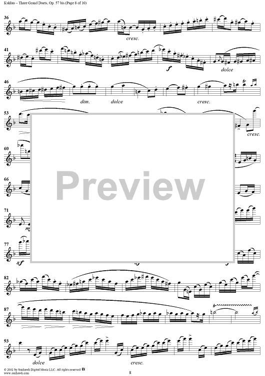 Digital Sheet Music for Three Grand Duets - Flute 1 by Friedrich Kuhlau scored for Two Flutes; id:285211