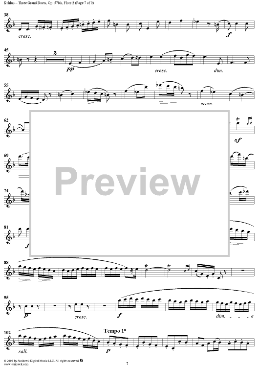 Digital Sheet Music for Three Grand Duets - Flute 2 by Friedrich Kuhlau scored for Two Flutes; id:285213