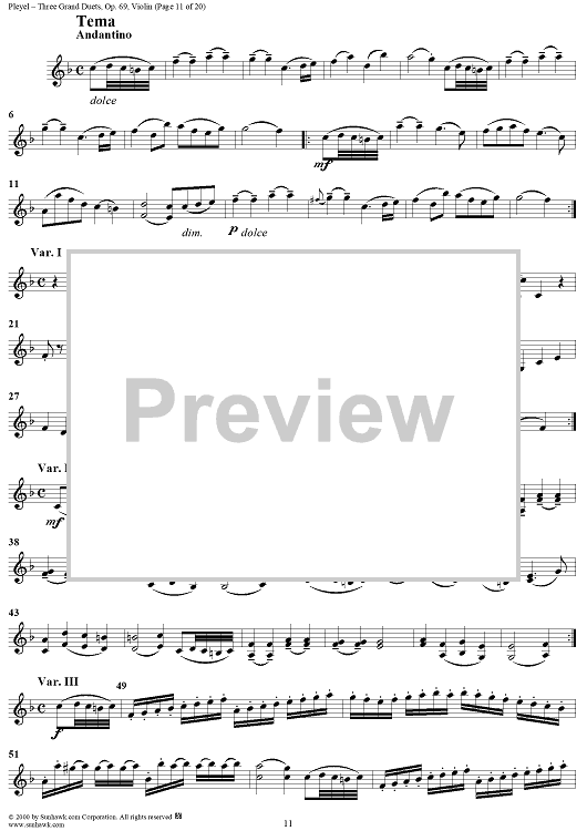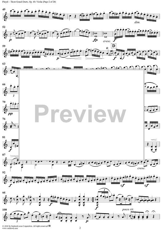 Digital Sheet Music for Three Grand Duets - Violin by Ignace Joseph Pleyel scored for Violin/Viola; id:235642