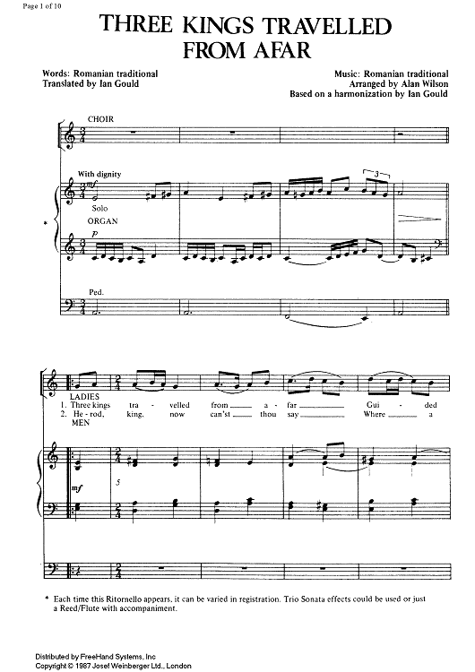 Digital Sheet Music for Three Kings Travelled from Afar by , Alan Wilson, Traditional scored for Choir/Organ; id:337502