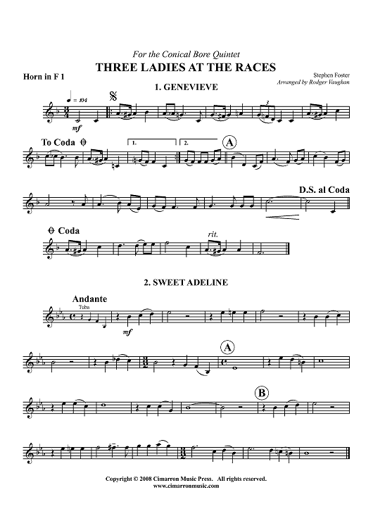 Digital Sheet Music for Three Ladies at the (Camptown) Races - Horn in F 1 by Rodger Vaughan, Stephen Foster scored for Brass Ensemble; id:417165