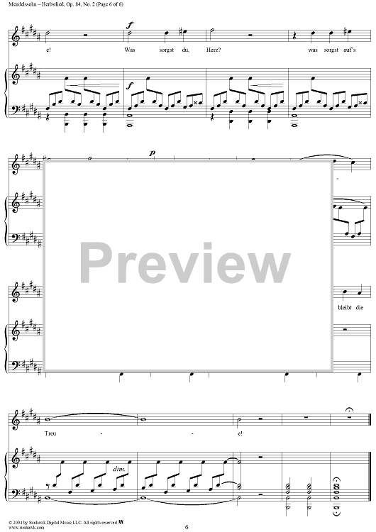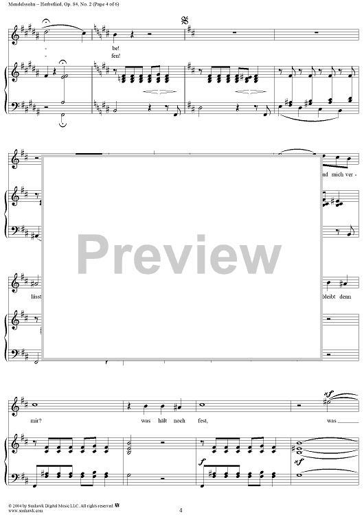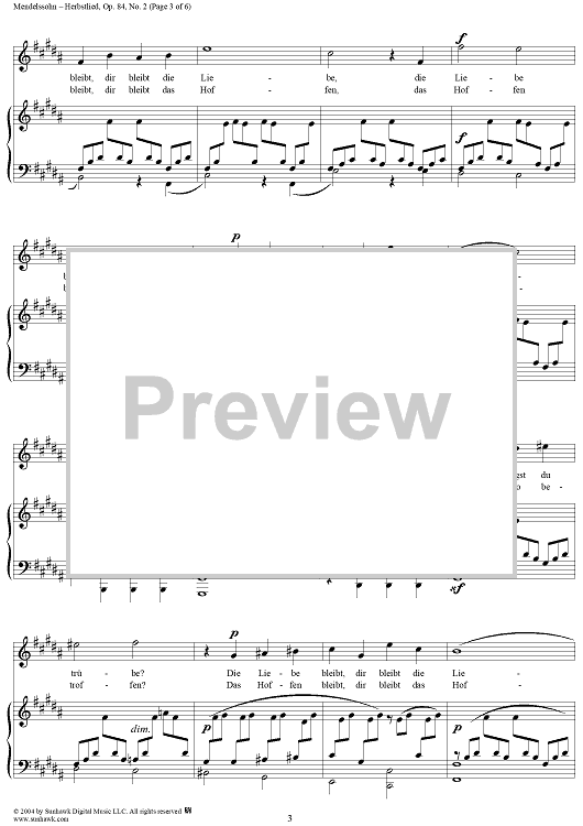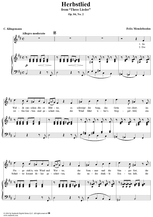 Digital Sheet Music for Three Lieder, Op. 84, No. 2: "Autumn Song" (Herbstlied) by Felix Mendelssohn scored for Voice/Piano; id:251883