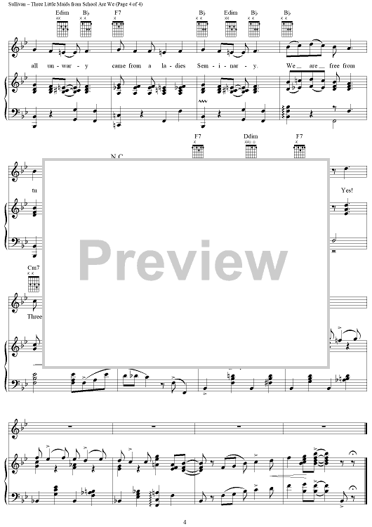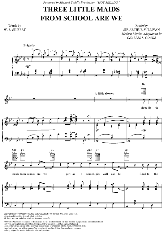 Digital Sheet Music for Three Little Maids from School Are We by W. S. Gilbert, Doc Cook, Arthur Sullivan scored for Piano/Vocal/Chords; id:362443