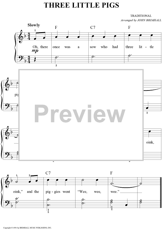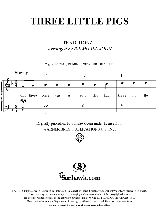 Digital Sheet Music for Three Little Pigs by John Brimhall, Traditional scored for Easy Piano/Vocal; id:261781