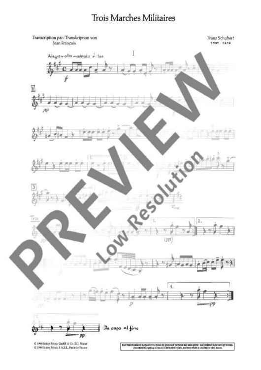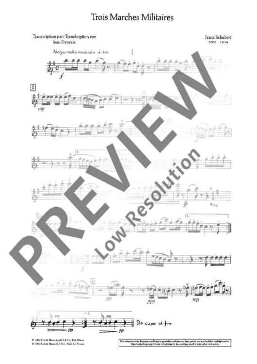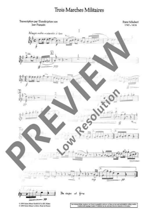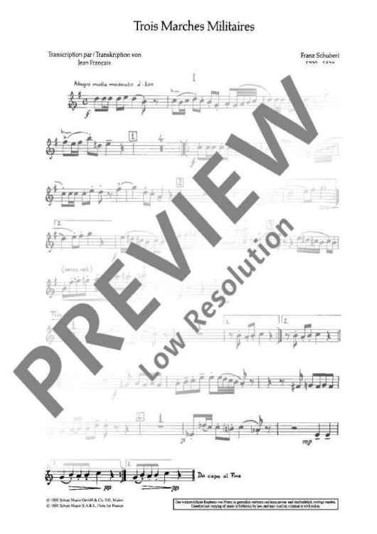 Digital Sheet Music for Three Milatary Marches - Set of Parts by Franz Schubert, Jean Françaix scored for Piccolo, Flute, 2 Oboes, 2 Clarinets, Bassoon, Contrabassoon And 2 Horns; id:488952