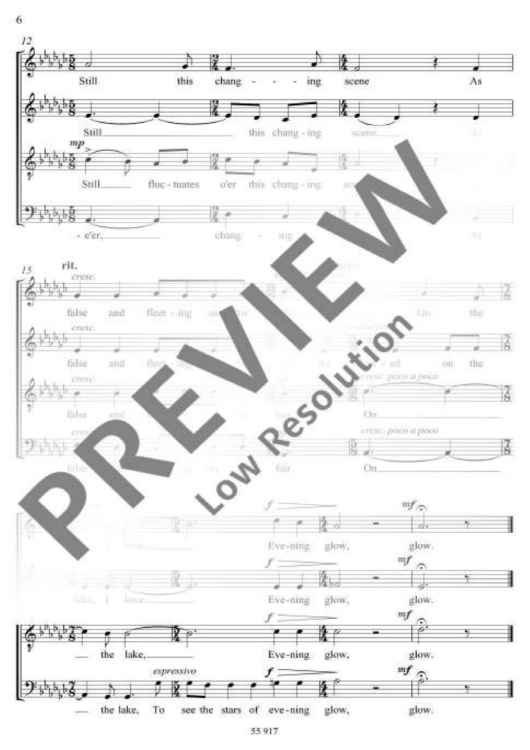 The fact that Pascal Martiné is a real expert in the field of sacred choral music shows once again in the 'Three Motets' for mixed a-cappella choir (SATB) by the Mainz-based composer and (choir) teacher. The three sacred motets on verses by the English bishop and hymn writer Reginald Heber (1783-1826) are characterized by a very individual dense and atmospheric musical language. Thus, they musically dwell on the contemplative character of the three English-language poems perfectly which is typical especially of the two prayers 'Evening Hymn' and 'O most merciful'. The four-part songs are mainly homophonic and perfect for church services.