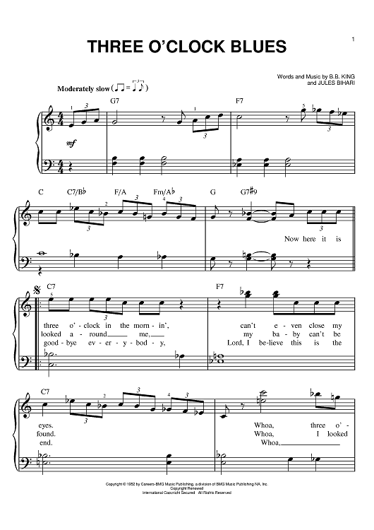 "Three O'Clock Blues" Sheet Music by B.B. King