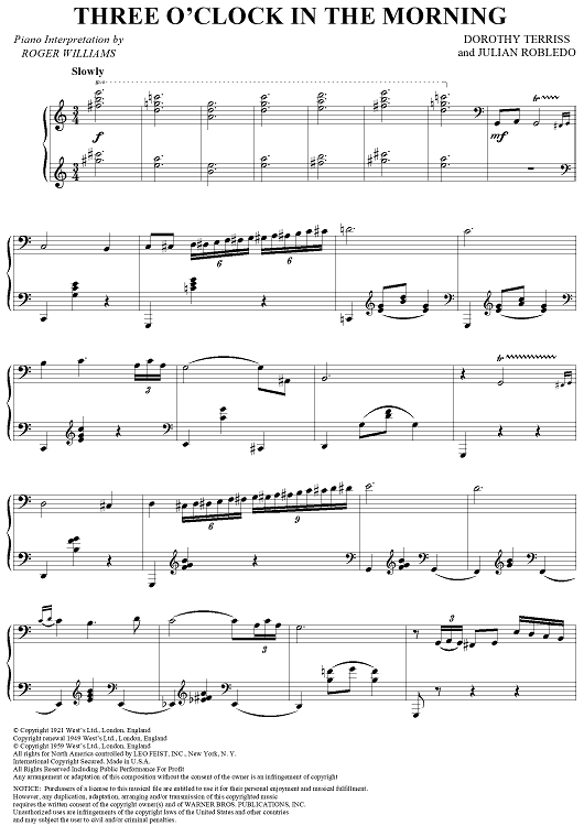 "Three O'Clock in the Morning" Sheet Music by Roger Williams