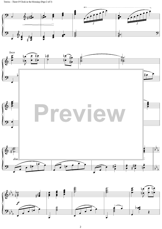 Digital Sheet Music for Three O'Clock in the Morning by Roger Williams, Julian Robledo, Dorothy Terriss scored for Piano Solo; id:321608