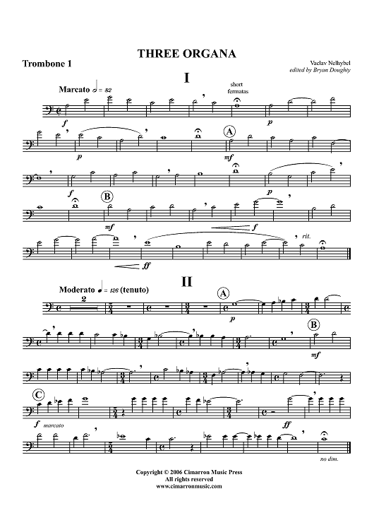 "Three Organa - Trombone 1" Sheet Music by Vaclav Nelhybel