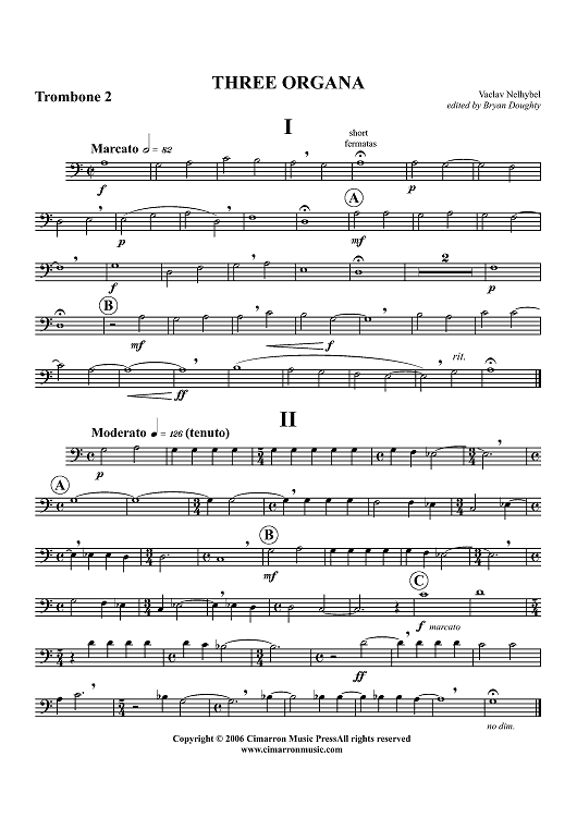 "Three Organa - Trombone 2" Sheet Music by Vaclav Nelhybel